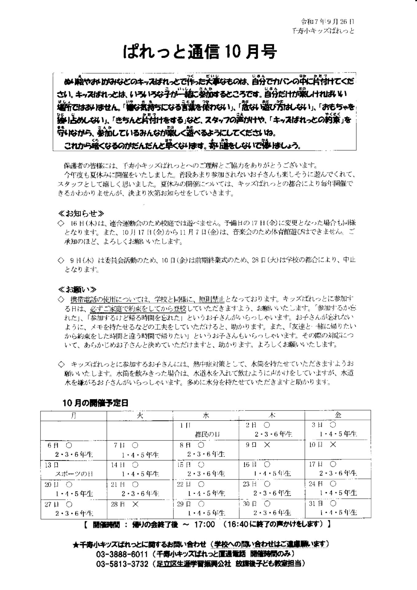 千寿小学校【千寿小キッズぱれっと】C4th資料掲載ページ