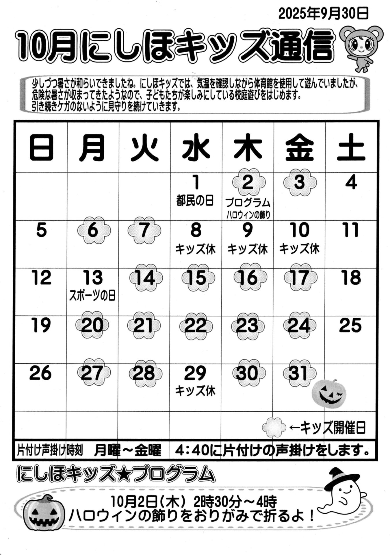 10月にしほキッズ通信