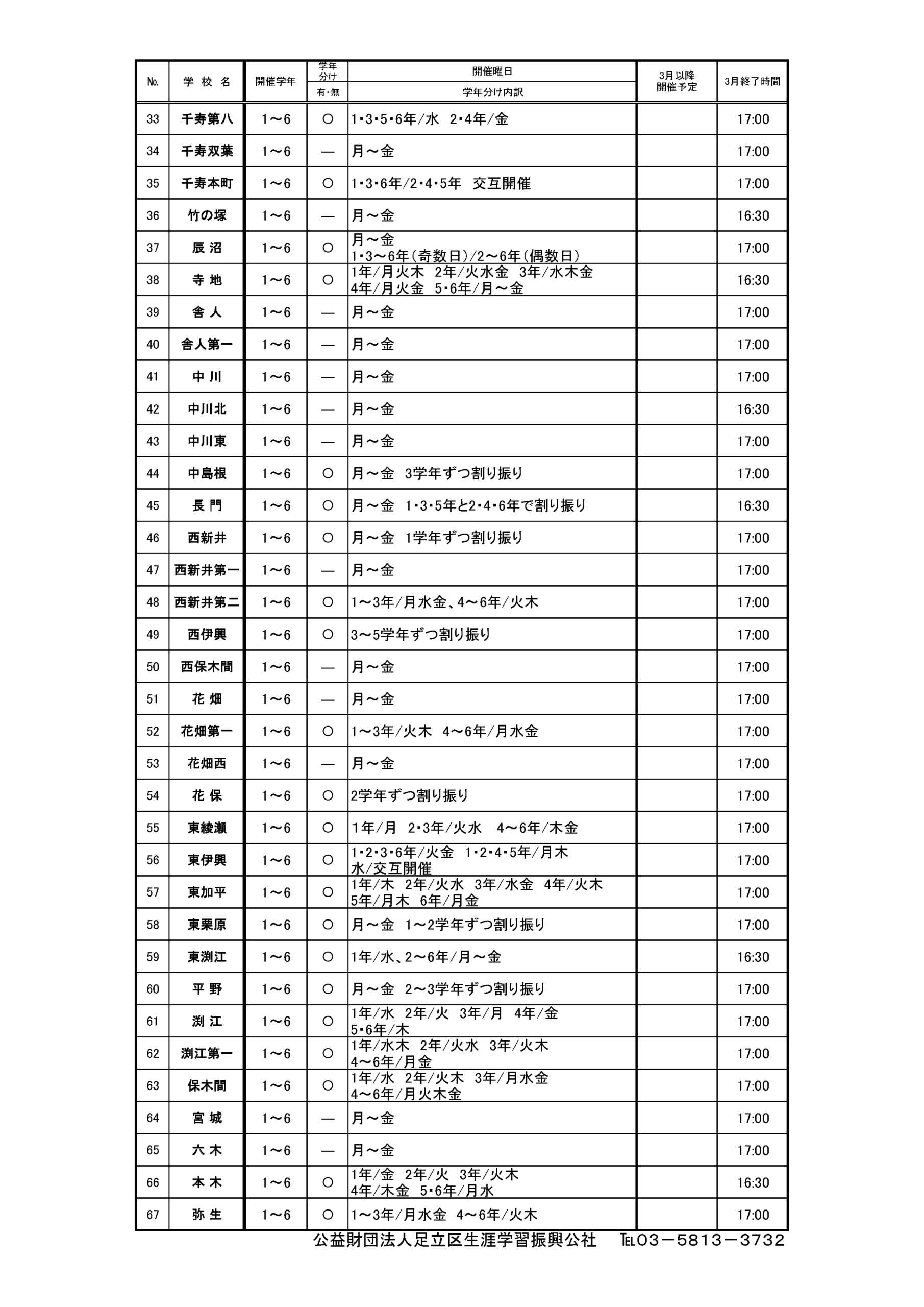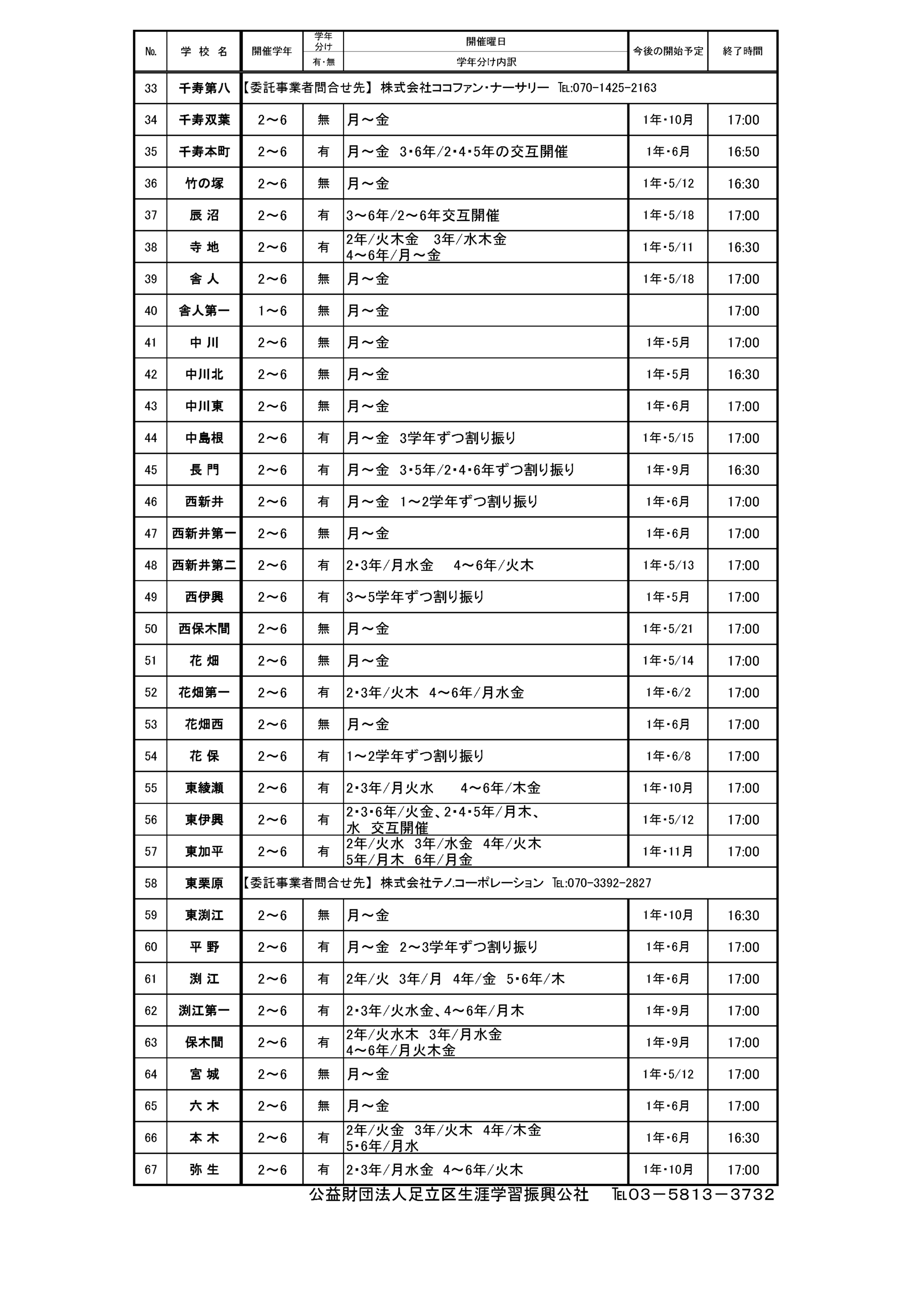 【更新確認待ち】あだち放課後子ども教室開催一覧