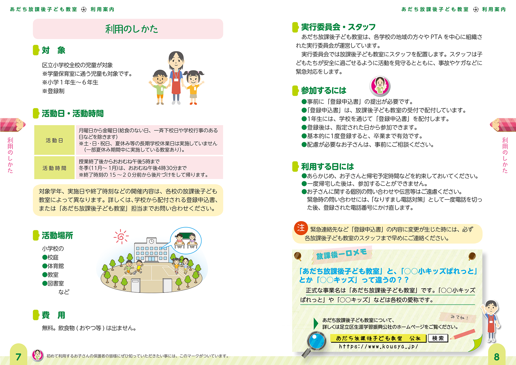 「あだち放課後子ども教室」利用案内を掲載しました。
