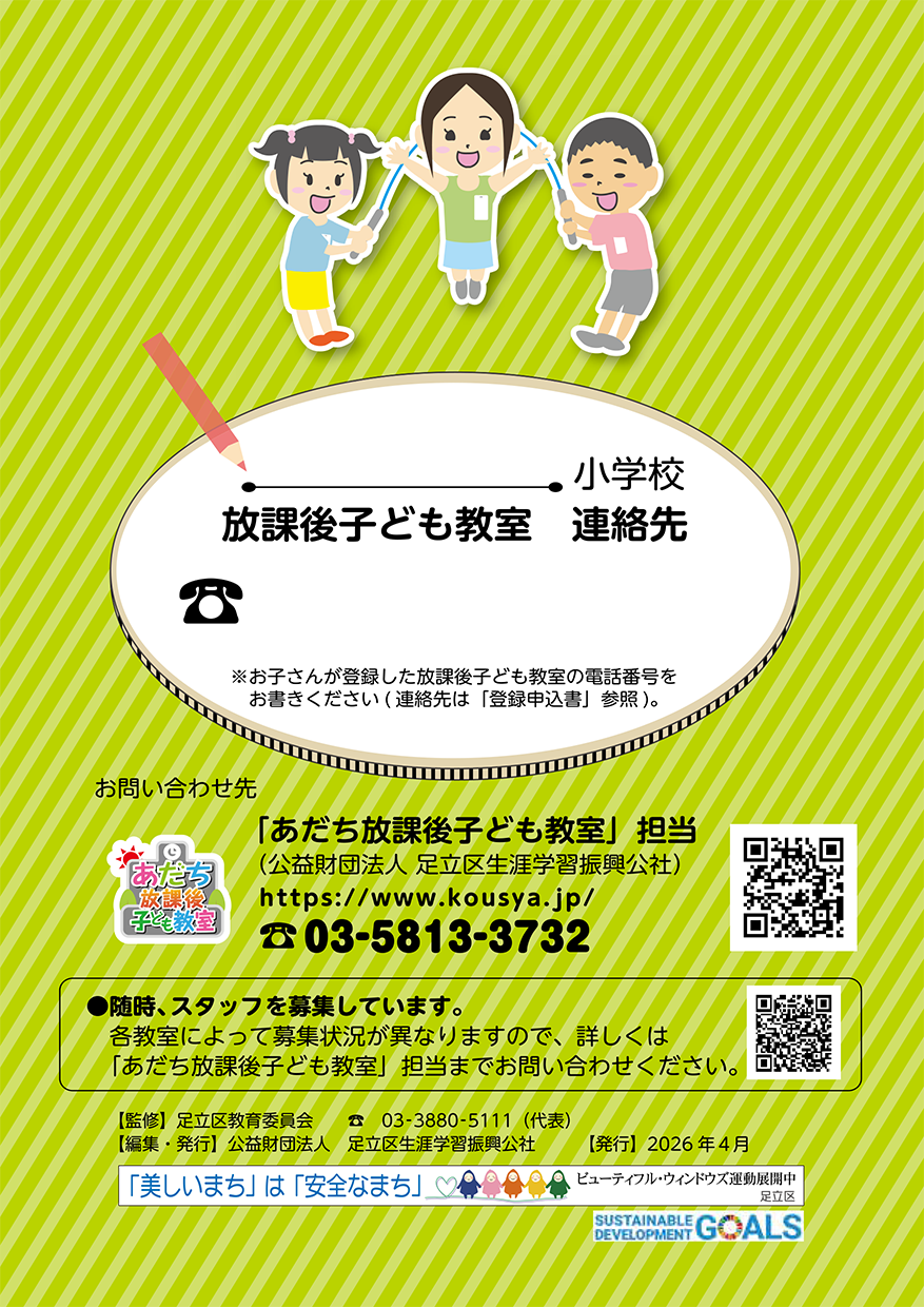 「あだち放課後子ども教室」リーフレットを掲載しました。